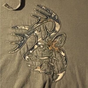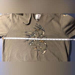 Green Hoodie Sweatshirt Camo Deer Head Appliqué Outdoors Size M