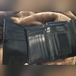 Brighton Black & Silver Tri-fold Wallet. 2 zipper pockets, 12 card slots EUC!