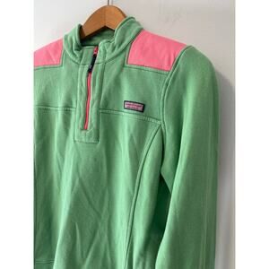 Vineyard Vines 1/4 Zip Pullover Sweatshirt 100% Cotton Green & Pink Medium JL