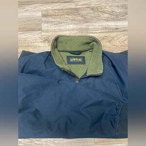 Orvis Jacket Mens Medium Navy Fleece Lined Bomber Zip Front Polyester Outdoor