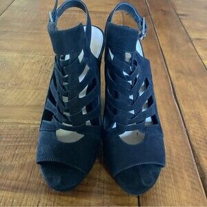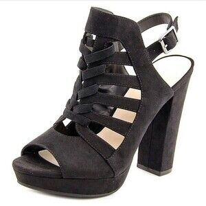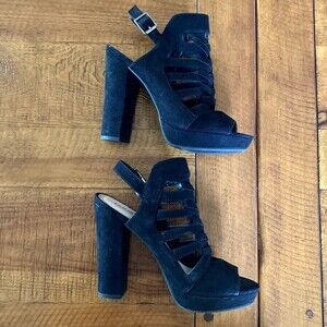 Bar III Nerisa Black Faux Suede Velvet High Heel Peep Toe Sandal Shoe Size 8.5