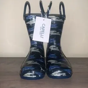 NWT Capelli New York Shark print blue colored rain boots size 6C