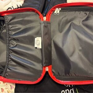 Adorable Hello Kitty carry on case in black with vibrant red bow design. Perfect for fans. approx 12 x 8.5 inches, good for makeup!
