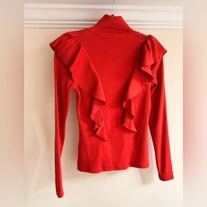 VERONICA BEARD Freida ruffled stretch-Pima cotton-jersey turtleneck top Sz XS