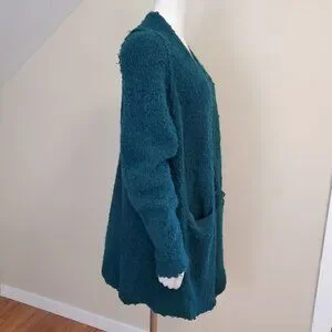 FP Free People Once In A Lifetime Cardigan Size S Frayed Green Longline Sweater