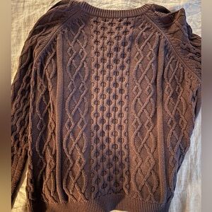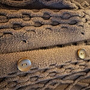 This cardigan is lovely! It is a gorgeous chocolate brown and very oversized. It has no major flaws, just some wash wear. It has been worn very little, I’m selling it because it’s more oversized than I like.