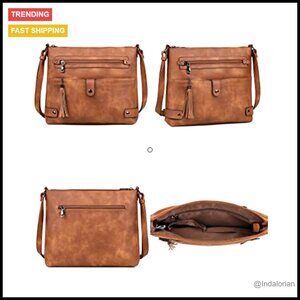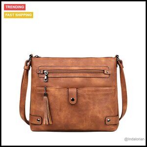 Large Crossbody Purse Multi Pocket Shoulder Bag Faux Leather Retro Chic