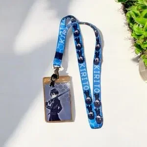 Kirito Anime button and lanyard with pin and charm . Features popular characters. Vibrant design.