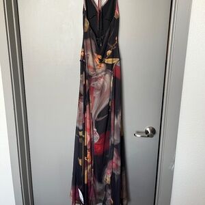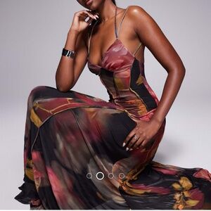 (NWT) ASOS DESIGN printed mesh maxi dress with exposed seam detailing