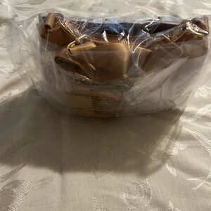 Chic tan crossbody bag by bebe. Features a matching coin pouch. Stylish and versatile.