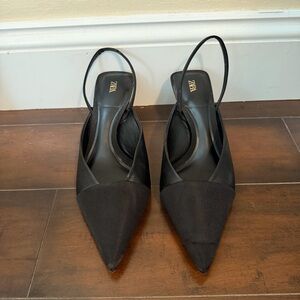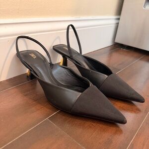 Zara Slingback Heels Black Gold