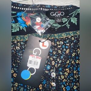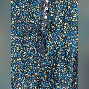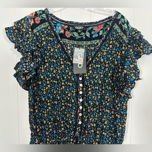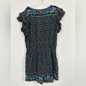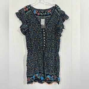 NWT GiGio USA Ruffle Sleeve Floral Boho Romper Half Button Size L elastic Waist
