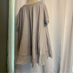 FT. Measurements on photos ❤️This Women's Saga Made In Italy cotton Oversized Tunic Top features a stylish boat neck and short sleeves, making it perfect for a variety of occasions including travel, parties, casual outings, and workwear. The light purple color and oversized fit add a trendy touch to the classic tunic style, while the pullover closure and linen material ensure comfort and ease of wear. Made in Italy by a reputable brand, this blouse is a versatile and fashionable addition to any woman's wardrobe.