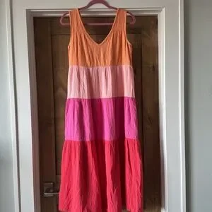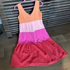 Marine Layer Corrine Gauze Maxi Dress XS Tiered Crinkle Rainbow Beachy