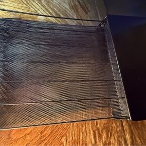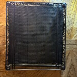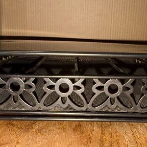 * Design: Features a black metal frame with an intricate floral or scrollwork mesh pattern on the front panel.