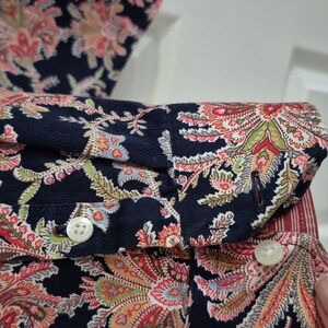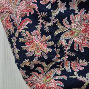 CHAPS shirt, floral, navy background, 100% Cotton, western, Med Petite