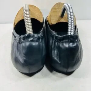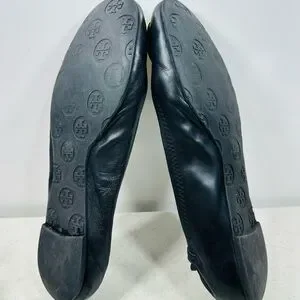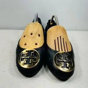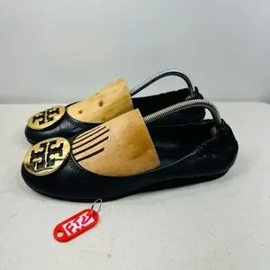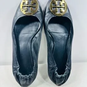 TORY BURCH BLACK LEATHER GOLD REVA BALLET FLATS SZ 9