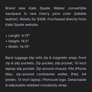 Kate Spade Convertible Walker Backpack Cherry Juice