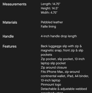 New with tags. See photos for measurements and details. Color of actual bag is a deep wine color, cherry juice. Photos of black bag are for reference only. Leather.