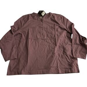 DICKIES Womens Heavyweight Henley Long Sleeve Shirt Purple 1X Plus Size