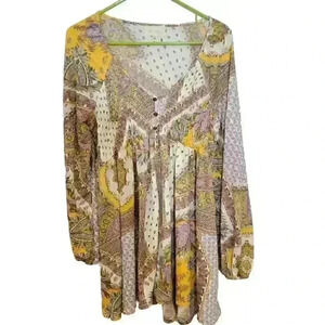 Mellowday Women's Size Medium Smocked Cottage Core Boho Peasant Tunic Top
