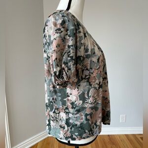Anthropologie Maeve muted floral puff sleeve top blouse size M casual office
