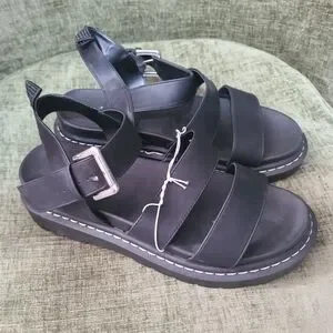 Chic black sandals with elegant straps. Ideal for everyday wear. 9 wide women's.