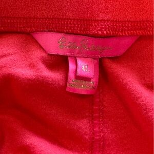 Lilly Pulitzer set. Beautiful sweatshirt with red embroidery and gems. Matching red velour pants. Both size XL.
