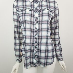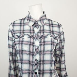 Cabi Pink & Blue Floral Plaid Button Down Festival Shirt Womens Size Small #233
