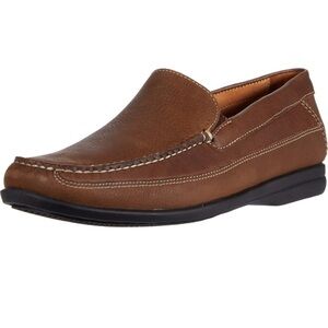 The Johnston & Murphy Locklin Venetian boasts a smooth leather upper. This slip-on has a moc stitch toe with dual goring for flexibility.