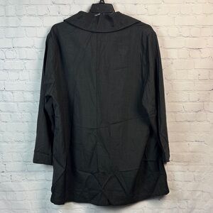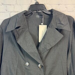 Sleek and stylish black trench coat. Features a classic design with button details. Ideal for versatile wear. Thin lightweight material. Size 2X (18/20)