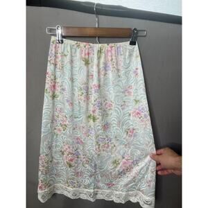Vintage Slip Skirt Nylon Floral Lace Stretch Coquette Fairy Formal Event Sz S