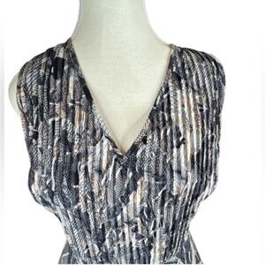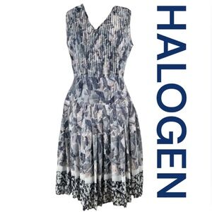 EUC Halogen Midi Dress, V-Neck, Invisible Side Lip, No Pockets, Pleated Bottom. PTP 18", Length 40". No Flaws. Chic midi dress with abstract pattern. Sleeveless design. Perfect for versatile styling.