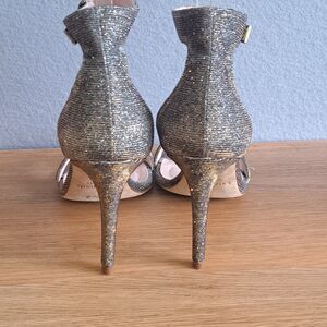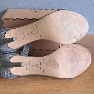 Kate Spade New York Isa Womens Sz 6.5 Silver Metallic Leather Heels Sandals 513