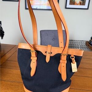 Vintage Dooney & Bourke Black Canvas & Leather Shoulder Bag