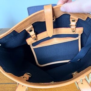 Vintage Dooney with beautiful leather trim and details. Black canvas shows wear & use, it can probably be easily cleaned. Interior in good shape, shows minimal normal use. This is truly a beautiful, timeless bag.