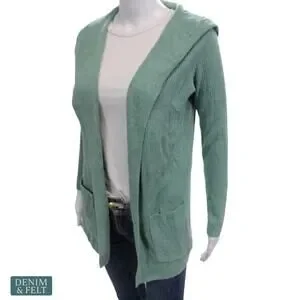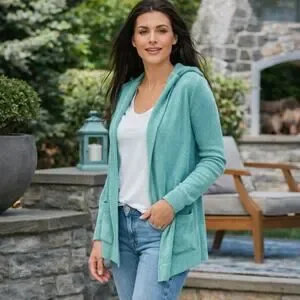 NEW Barefoot Dreams CozyChic Ultra Lite Hooded Ribbed Cardigan Aquamarine XS