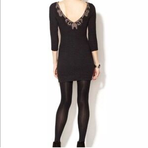 Free People Black Embroidered & Beaded Bodycon Mini Dress Size M Lace Stretch