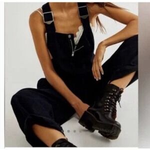 Free People We The Free Hunter Black Denim Overall Size Medium Slouchy Fit
