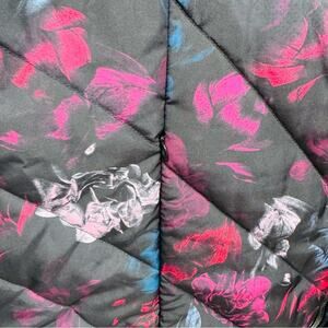 Lane Bryant Womens Puffer Vest Full Zip BLack Floral Pockets Zip Front Sz 26/28