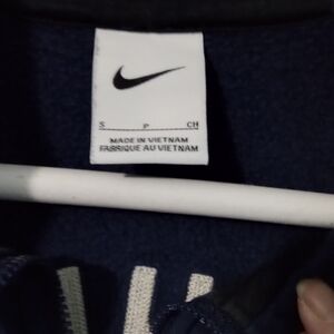 Dark blue pullover with quarter-zip. Features Nike logo and embroirdered letter detail. Nothing really wrong with, looks a little faded and is in worn condition.