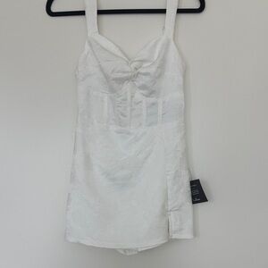 Lulus White Jacquard Bustier Skort Romper