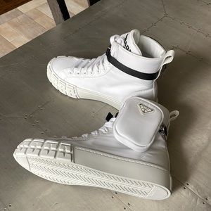 Prada Re-nylon white sneaker trainer flats with removable pouch sz 37.5