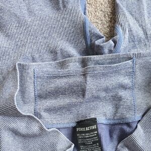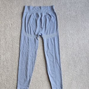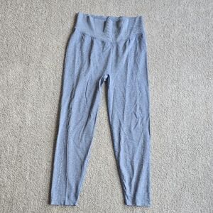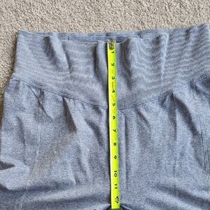 Style: These are described as regular length leggings with a heathered (speckled) blue