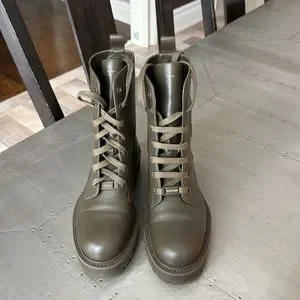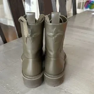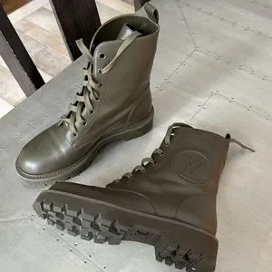 Louis Vuitton green khaki combat military weather boot bootie sz 38 with box
