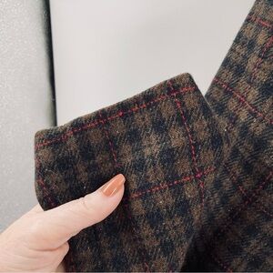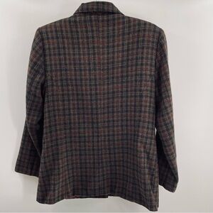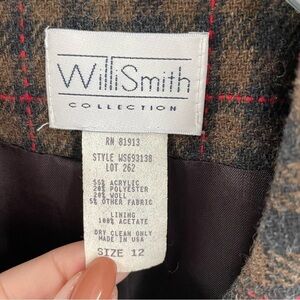 Willi Smith Vintage Wool Blend Plaid Faux Leather Button Pockets Jacket Blazer