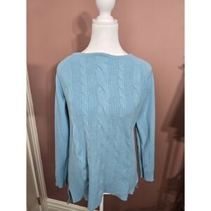 Cyrus Womens Light Blue Cable Knit Raglan Sleeve Crew Neck Sweater Size M