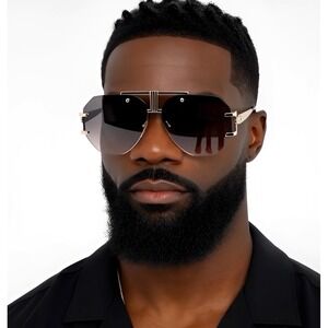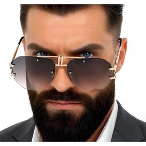 Men Designer Shades Gold Frame Rimless Sunglasses Fashion Trendy Aviator Pilot