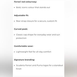 NWT. Support the Scuderia! Official F1 Ferrari Leclerc team hat. Never worn. One size - ADULT- with adjustable back. By Puma.