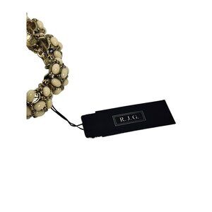 RLG Gold Tone And Small Oval Cream Cabochons Stretch Statement Bracelet (6249)